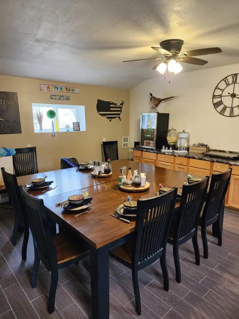 Socialize and recharge at The Roost, our newly remodeled common area perfect for relaxation and connection after a great day in the field. This welcoming space offers high-speed WiFi for sharing your experiences, comfortable seating for socializing, and the perfect environment to unwind and recharge for tomorrow’s adventure. Catch your home team NCAA or NFL teams action on our large TV’s, or broadcast your days hunting photos and videos for all to enjoy.